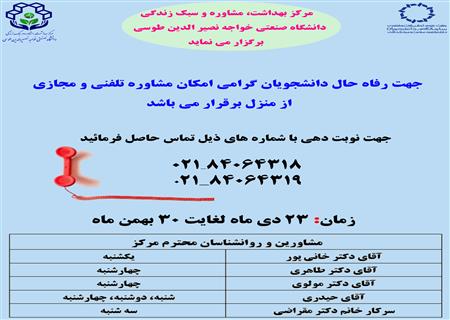 ارائه خدمات مشاوره تلفنی به دانشجویان گرامی در ایام امتحانات